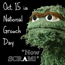 National grouch day falls on the 15th October every year. It is to celebrate the feeling of being imitable and grumpy! It was inspired by the character of Oscar the SesameStreet.
